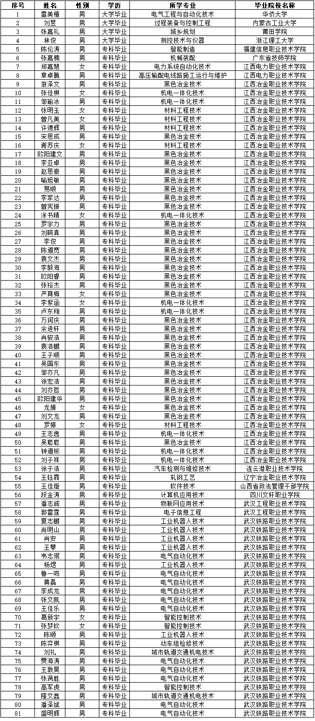 依據寶鋼德盛不銹鋼有限公司2023年校園招聘計劃,結合中國寶武《陽光招聘具體操作指引》工作要求,通過個人自愿報名初試、復試、面試、線上測評、背景調查和入職體檢各項工作,經太鋼集團審批,現將2023年第二批校園招聘擬聘結果公示名單公示如下: